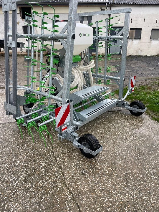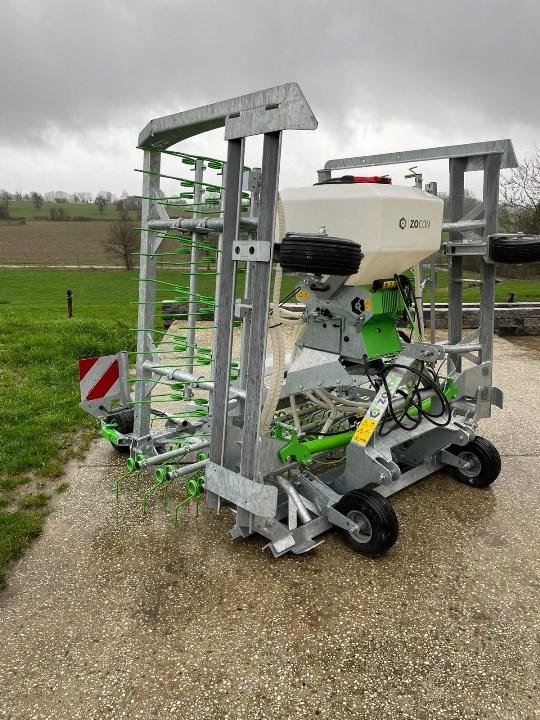 Les dents du herse fendent le prairie et aèrent ainsi le sol