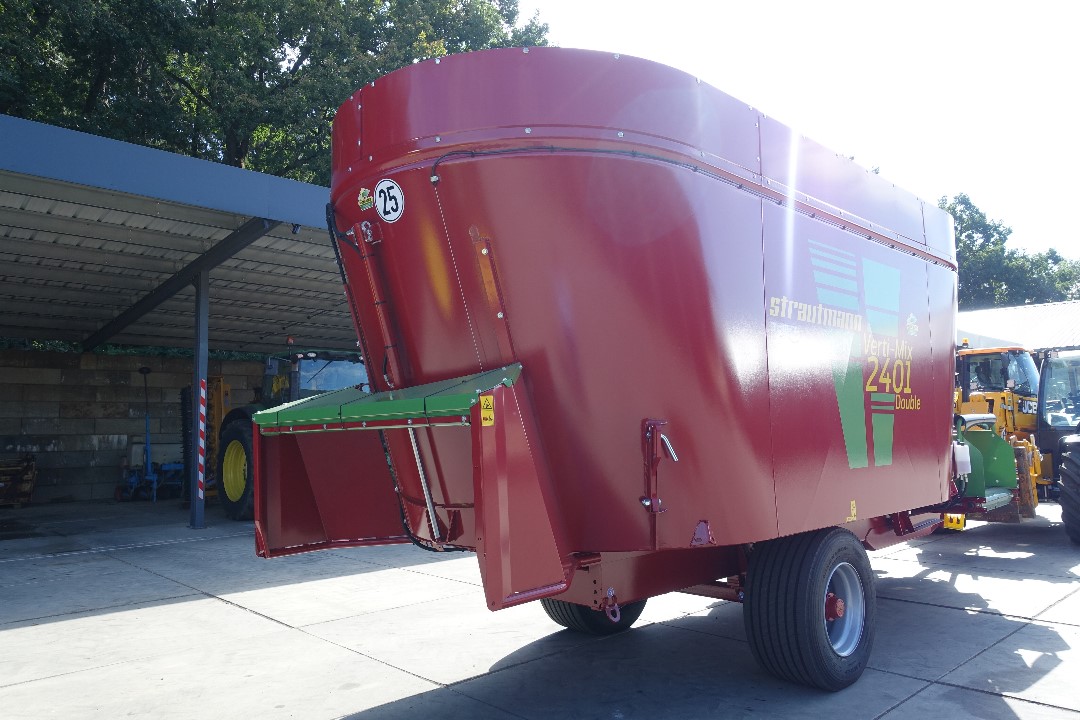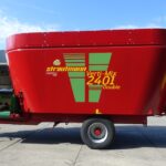 Longueur 7.06m; Largeur avec tapis transversal 2.28m; Largeur avec trappe de déchargement 2.38m; Largeur avec 2 trappes de déchargement 2.48m; Largeur aux roues 2.25m; Hauteur rehausse pour 24m³ 0.36m; Longeur avec tapis frontal 7.76m; Longeur avec tapis arrière 7.27m; Hauteur de déchargement tapis 0.81m; Poids 7150kg; Voie 1.720mm; Epaisseur trémie 8mm; Epaisseur fond 20mm; Longueur intérieure de cuve avec anneau anti-débordement 5.19m; Hauteur 3-3.2m suivant roues; 2 vis mélangeuses étagées Vario pour un mélange doux et efficace; 2 boîtiers coaxiaux T très robustes avec protection individuelle
