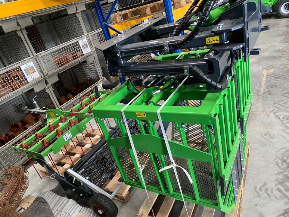 L’AVANT GreenPacker vous permet de nettoyer un box à la machine (maximum 3,34 m de large). Une fois repliés, les grappins ne mesurent que 1 m de large, ce qui vous permet de passer par une porte de 1,10 m (en fonction de la largeur de la machine). De plus, vous pouvez déplacer le GreenPacker latéralement et utiliser le laser pour le positionner au milieu du box. Les bras télescopiques permettent en outre une ouverture des grappins jusqu’à 3,34 m. Grâce aux butoirs en caoutchouc, vous poussez le fumier vers l’avant pour ensuite le ramasser en refermant le GreenPacker. Ce collecteur de fumier vous permet de nettoyer votre box en un rien de temps et d’évacuer ensuite la paille vers le tas de fumier.