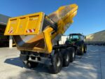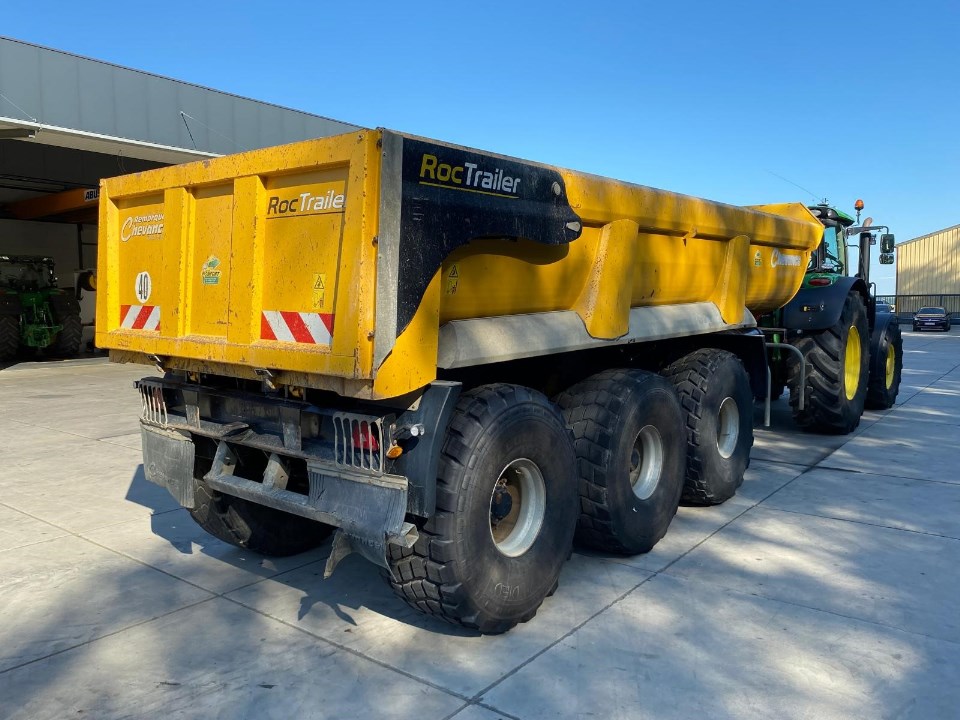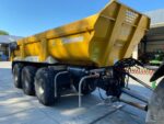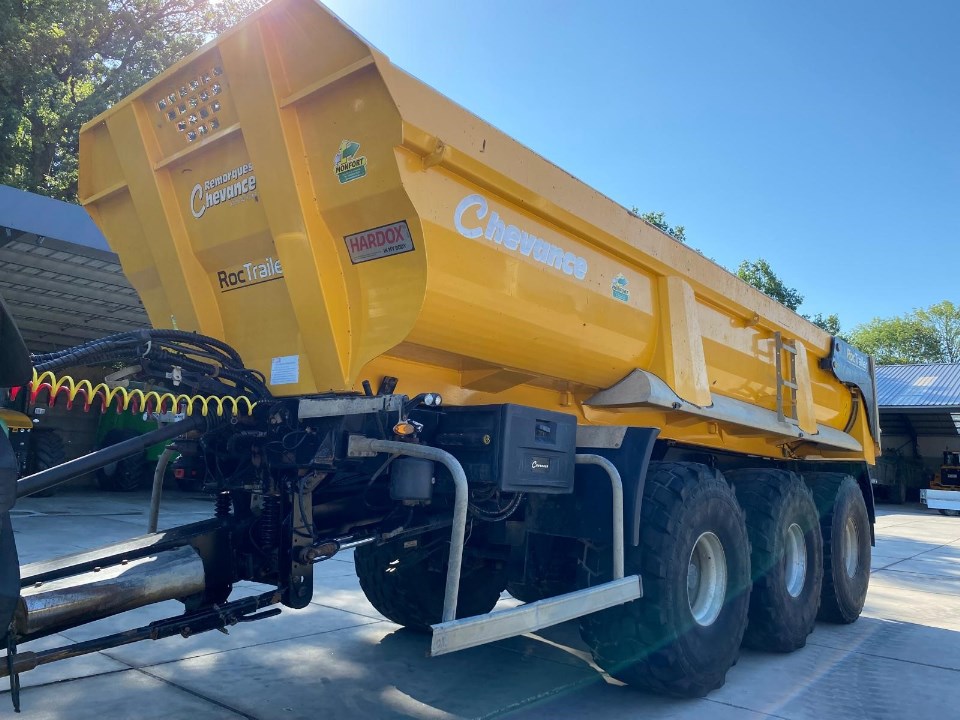 Caisse 6.50-6.90 x 2.28 x 0.90m; Fond Hardox 540 8mm; Côté Domex 700 6mm; Bennage mixte par pompe 150L/min ou direct tracteur; Descente à commande hydraulique; Cardan grand angle; Verin bennage renforcé 56L; Train roulant Colaert avec 2 essieux carrés de 150mm dirtectionel forcé à commande par 1 barre côté gauche, suspension hydraulique type STT, corecteur de dévers avec boitier en cabine pour commande automatique ou manuelle, 1° essieu releveur, stabilisateur de bennage arrière; LS; Timon à suspension hydraulique; Attache K80; Béquille hydraulique repliable; Casquette frontale; Bip de recul; Chape à souder pour le directionel; Freinage pneumatique proportionnel 40km/h; Feux gabarit; Feux LED; Phares travail arrière LED; Pare-choc et pare-cycliste; Roues Michelin XS 24R20.5; Peinture Jaune
