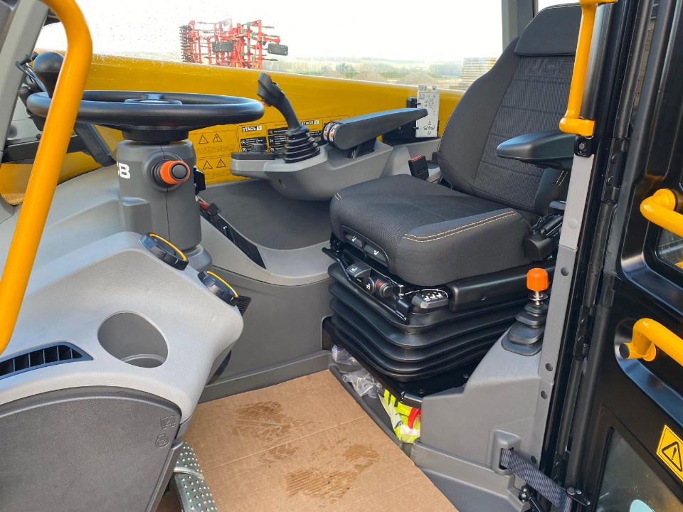 Moteur JCB DieselMAX Stage V; Admission Turbocompressée et refroidie; Cylindrée: 4.8L; Nombre de cylindres: 4; Alésage: 106mm; Course: 135mm; Pression de service: 260bar; Circuit hydraulique principal: 140l/min; Type de pompe: cylindrée variable; Réservoir de carburant: 169L; Réservoir d’AdBlue: 20.8L; Réservoir de lave-glace: 6.2L; Réservoir hydraulique: 113L; Liquide de refroidissement: 28L; Carter d’huile moteur: 15L