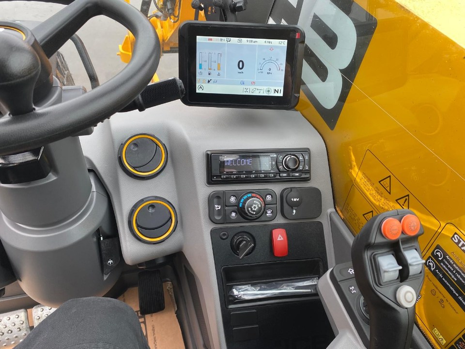 Transmission: 150 cv / 112 kW, DualTech 40km/h; Ventilateur réversible automatique; Déconnexion électrique 2/4 roues motrices; Direction 3 positions avec alignement automatique des 4 roues; Différentiel à glissement limité sur le pont avant; Système de régénération hydraulique pour l’abaissement et la rétraction; Système hydraulique intelligent, pompe à piston Variflow, 140L/min; Amortissement de fin de flèche pour le levage et la rétraction; Décompression rapide de la ligne auxiliaire, interne et externe; Système de secouage automatique du godet; Système de suspension active SRS automatique; Ligne auxiliaire avant simple circuit double effet; Ligne auxiliaire arrière simple circuit double effet; Joystick monté sur l’accoudoir du siège; Climatisation manuelle; Vitre arrière chauffante; Phares de travail à LED, 2 sur avant cabine, 2 sur arrière cabine, 2 sur flèche, éclairage d’attelage et éclairage intérieur; Option phares de travail à LED 360° : 4 Lampes à l’avant de la cabine, 2 Lampes à l’arrière de la cabine, 2 Lampes sur la flèche, 2 Lampes sur le châssis arrière, 1 Lampe sur l’attelage arrière; Frein de stationnement hydraulique; Freins de remorque hydrauliques double ligne avec prise électrique 7 broches et prise EBS; Crochet de remorquage; Kit de protection de flèche; Plaques de protection du plancher de la transmission ; Points de graissage arrière centralisés; Timon à fourche de 10T avec miroir et électricité ; T1A tracteur Européen homologué conformément à la norme NEN-EN 1459-1