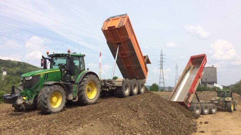 Afin de transporter vos terres, empierrement, etc., nous proposons également une solution de transport par tracteur avec bennes 2 ou 3 essieux.